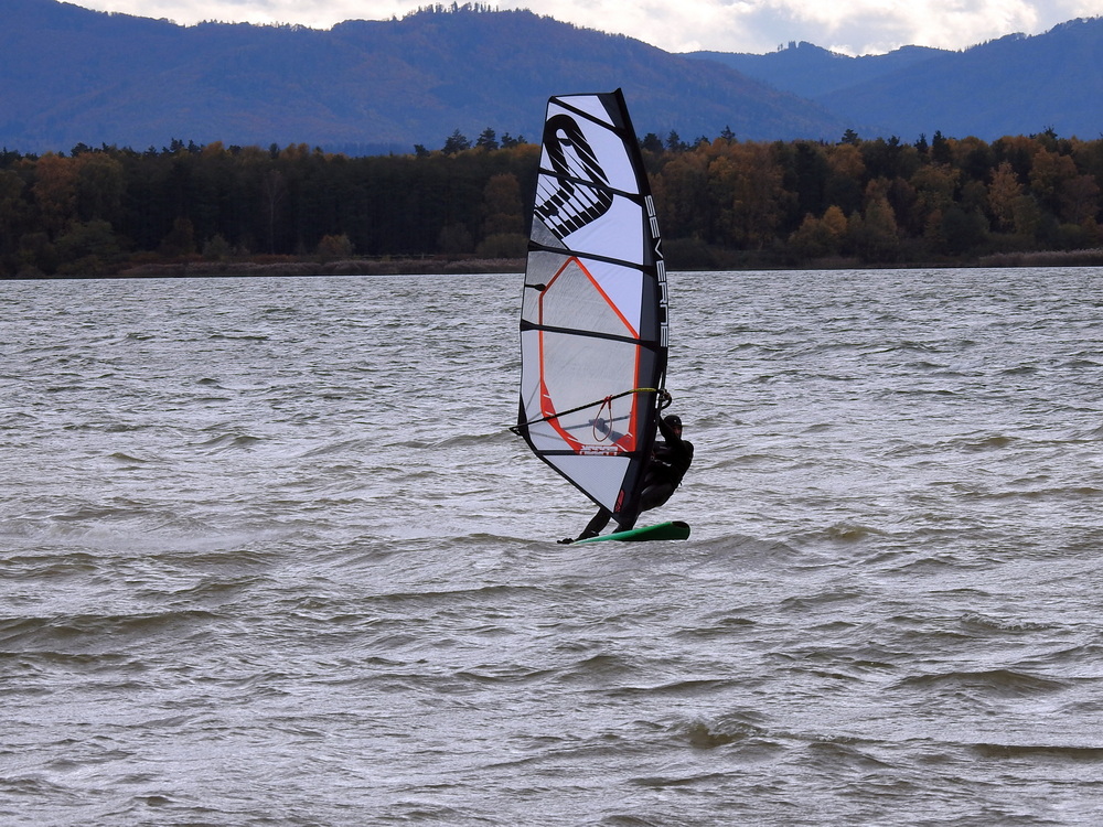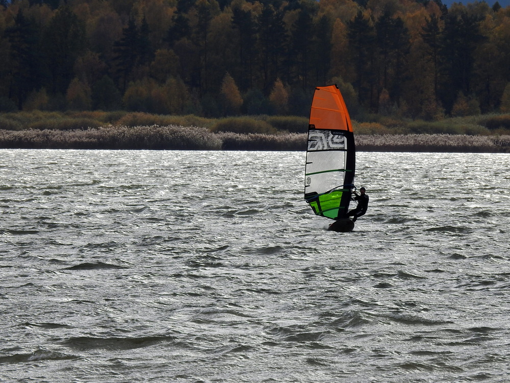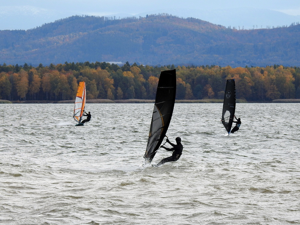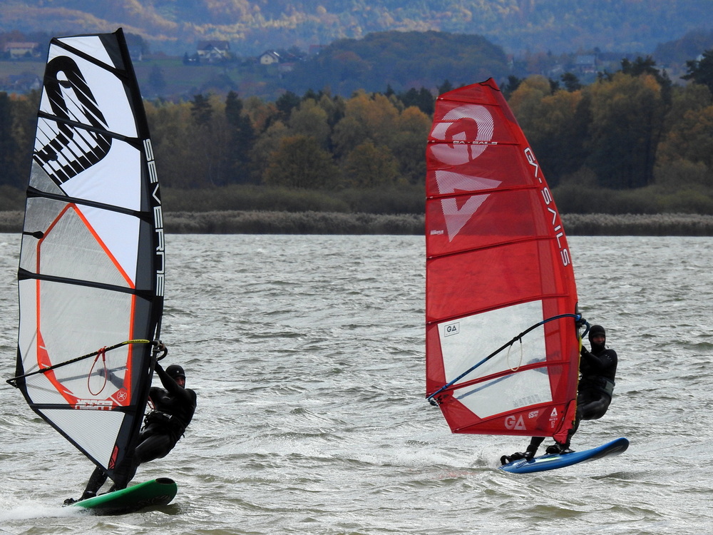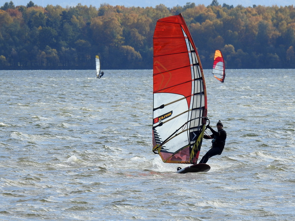 Słoneczny i bardzo wietrzny dzień. Od rana nieco nieśmiało, ale później rozwiało się na maxa. Nawet nie było za bardzo zimno, zarówno w wodzie jak i w powietrzu. Jesień na Goczałkowicach na całego!