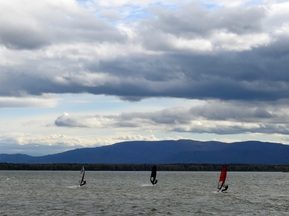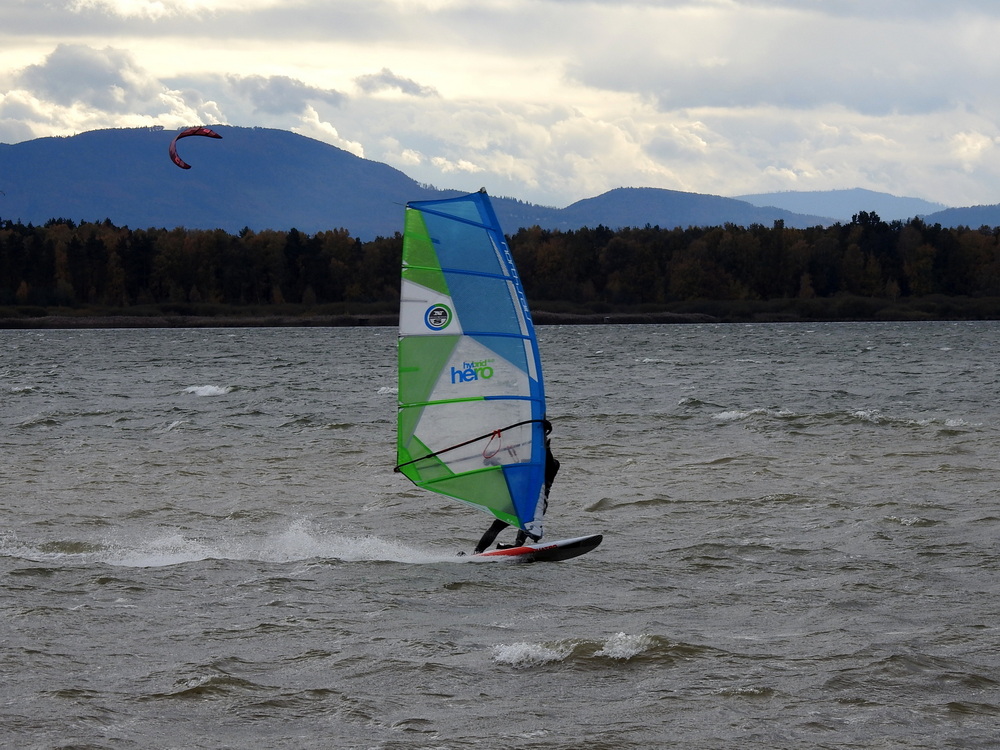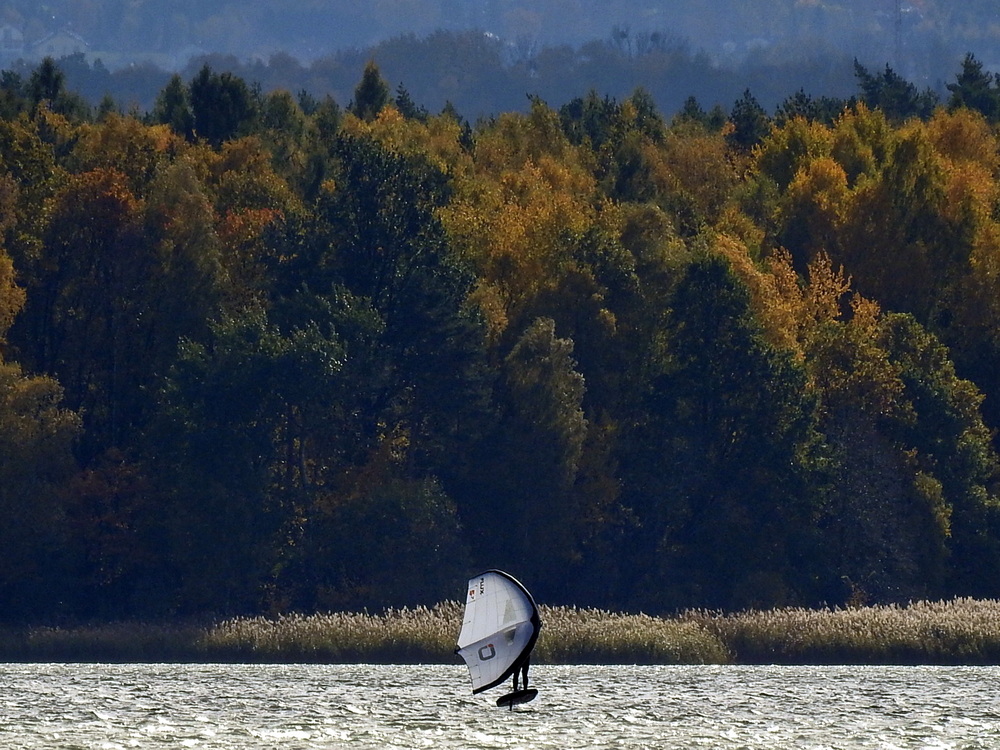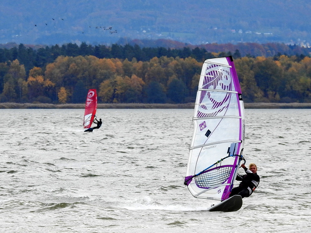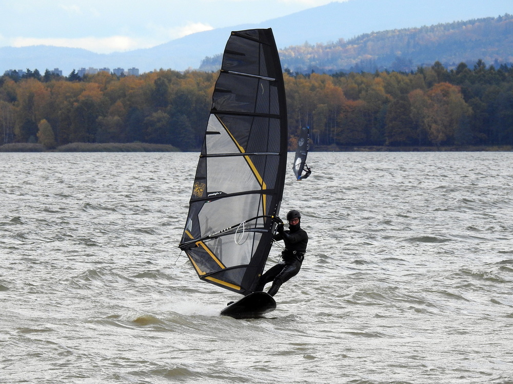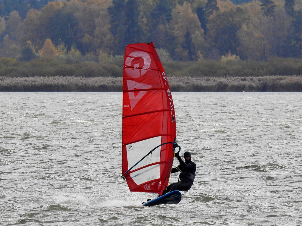 Słoneczny i bardzo wietrzny dzień. Od rana nieco nieśmiało, ale później rozwiało się na maxa. Nawet nie było za bardzo zimno, zarówno w wodzie jak i w powietrzu. Jesień na Goczałkowicach na całego!