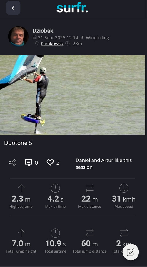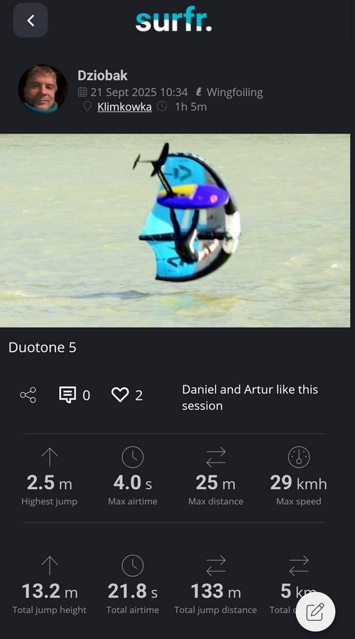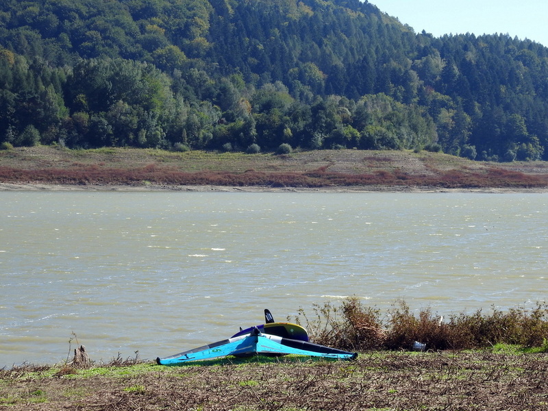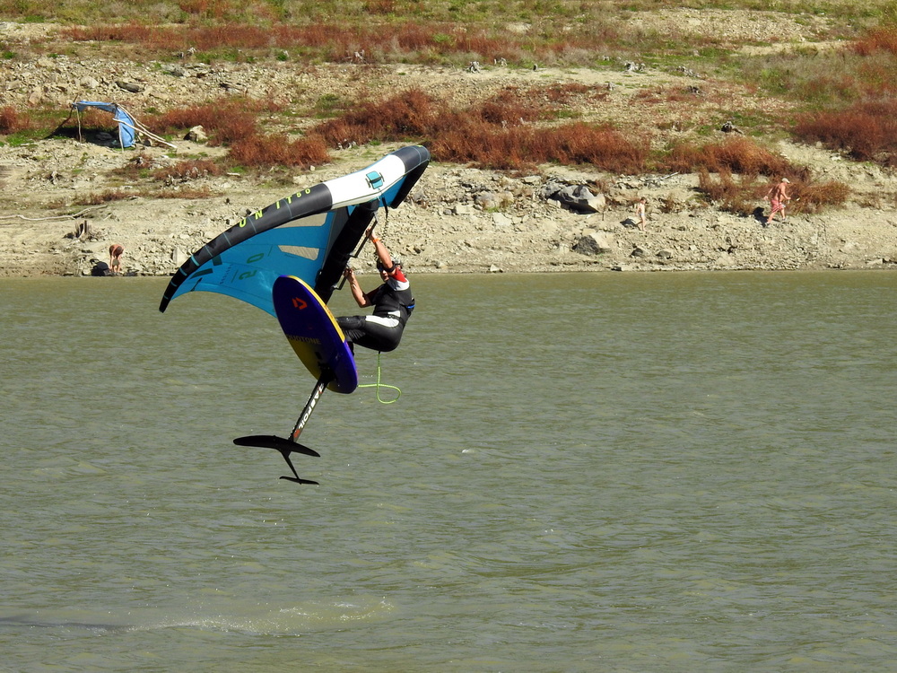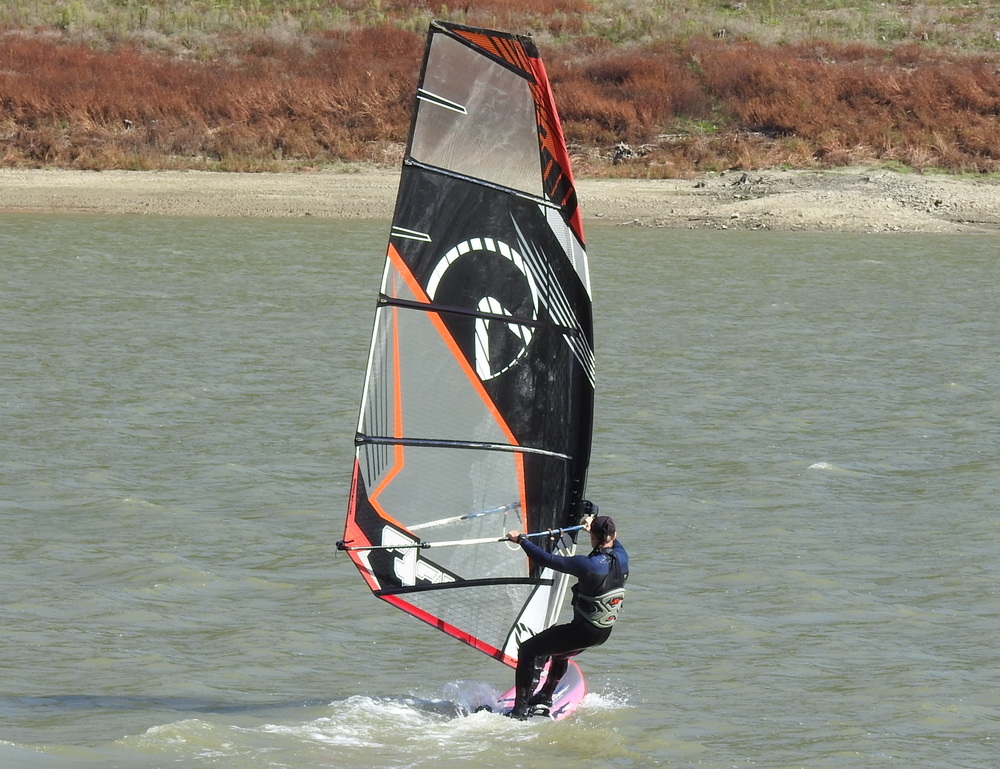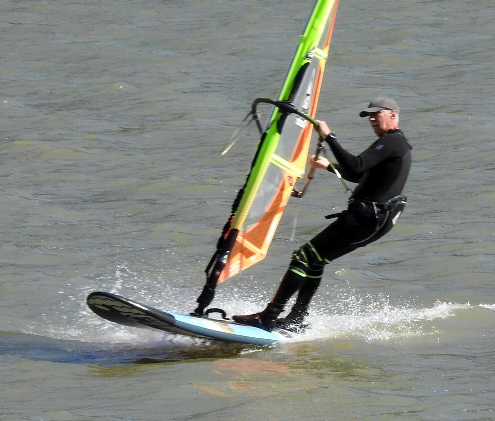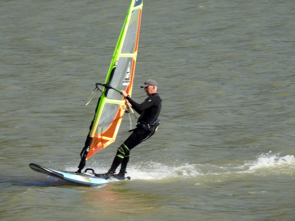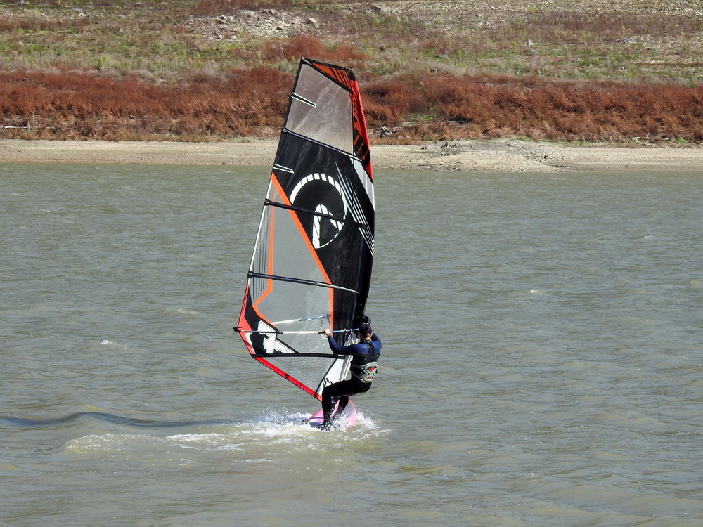 Prognoza kosmiczna - niestety jak to ostatnio bywa zbyt duża różnica pomiędzy podstawa wiatru a siłą w szkwałach powoduje że wiatr przychodzi w krótkich i narowistych szkwałach. Tak bywa szczególnie przy niskim stanie wody. Tak było i w niedziele. Do południa można było jeszcze wytrzymać, ale popołudniu było zupełnie słabo, gdyż szkwały były krótkie i o zmiennych kierunkach. Za to pogoda pełna lato - ciepło i słonecznie. Wody nie przybywa, ale przywiozłem 20 litrów wody w kanistrach o wlałem do jeziora - może pomoże, chociaż wolałbym morze (wody) Ciepło w wodzie i powietrzu.